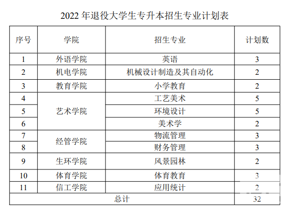 2022年景德镇学院专升本退役大学生士兵免试招生对象