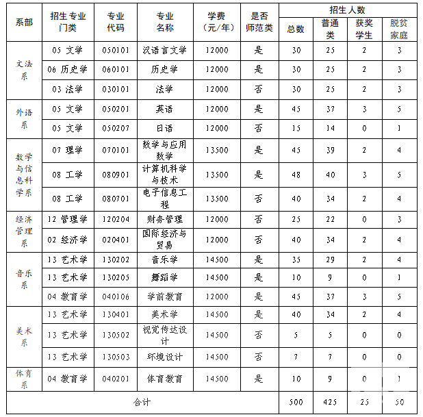 1.法学、汉语言文学、历史学、英语、日语、财务管理、国际经济与贸易、学前教育专业12000元/(人·学年);